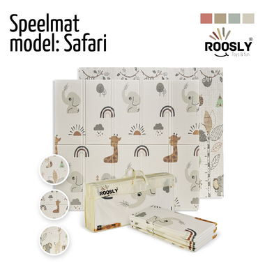 Roosly Speelmat Baby - Speelkleed Baby - Inclusief Opbergtas - babygym - Dubbelzijdig en opvouwbare Foam XPE 180 x 200 cm - speelgoed - Veilig & Zacht - model Safari