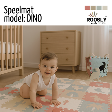 Roosly Speelmat Baby - Speelkleed Baby - babygym - Foam vloerpuzzel 145 x 145 cm - Opstaande Rand - Inclusief Opbergtas - speelgoed -Veilig & Zacht - Dino - Pastel