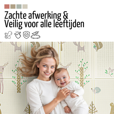 Roosly Speelmat Baby - Speelkleed Baby - babygym - Foam vloerpuzzel 180 x 180 cm - Inclusief Opbergtas - speelgoed - Veilig & Zacht - Pastel beige & groen