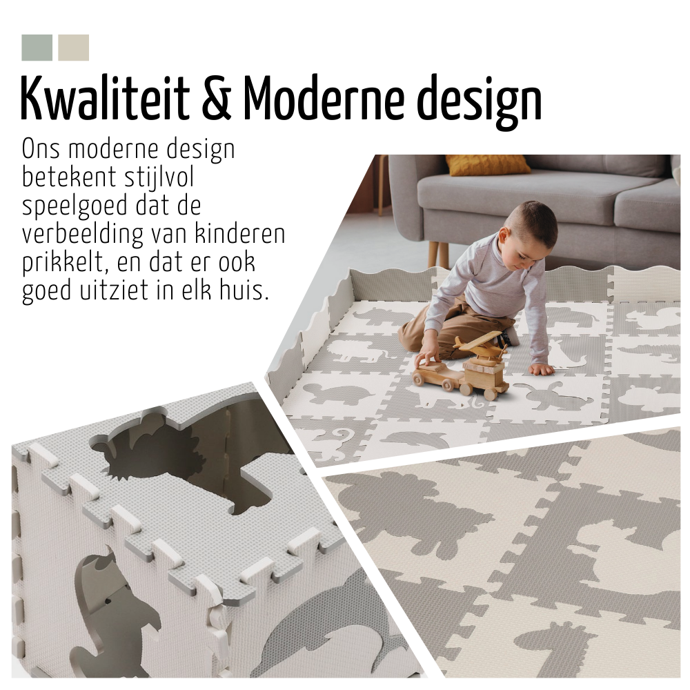 Veilig en Gemakkelijk Schoon te Houden: Ons EVA-schuim is duurzaam en waterafstotend, waardoor het gemakkelijk te reinigen is. Je kunt het eenvoudig afnemen met een vochtige doek, en dankzij de opstaande randen blijft speelgoed op zijn plaats.